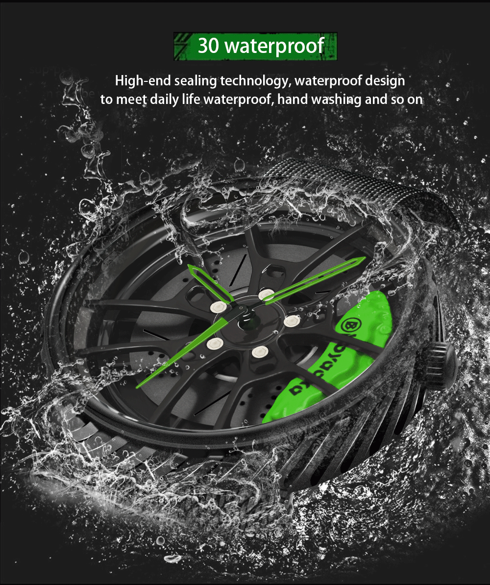 Car Wheel Watch-Waterproof Stainless Steel Japanese Quartz Wrist Watch