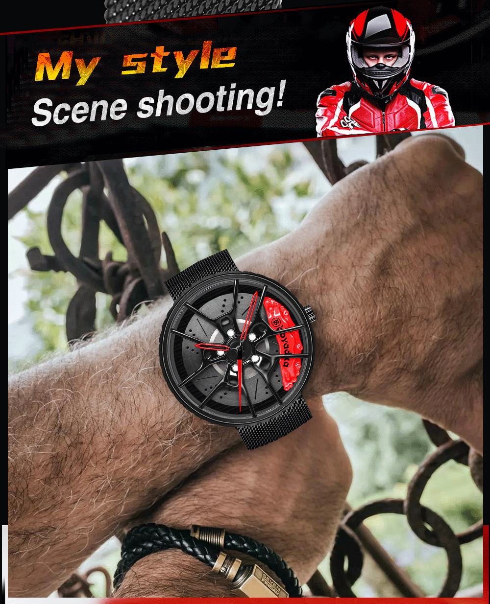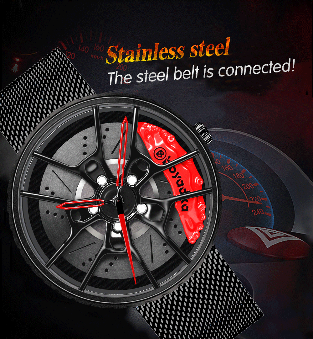 • 【Racing Car Rim Design】: We inspired by high-end sports car wheel rim and sport brake caliper shape, hollow dial design ingeniously combined racing car elements and watch elements, perfectly demonstrated the beauty of machinery. Great gift for men!