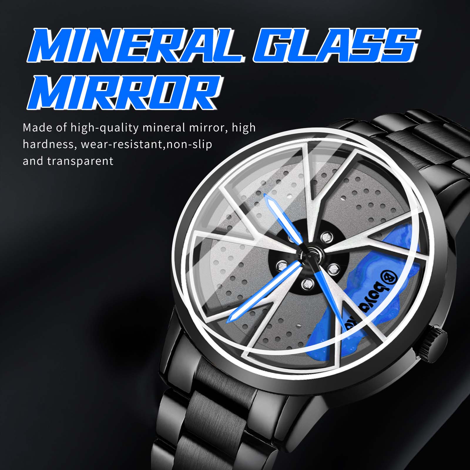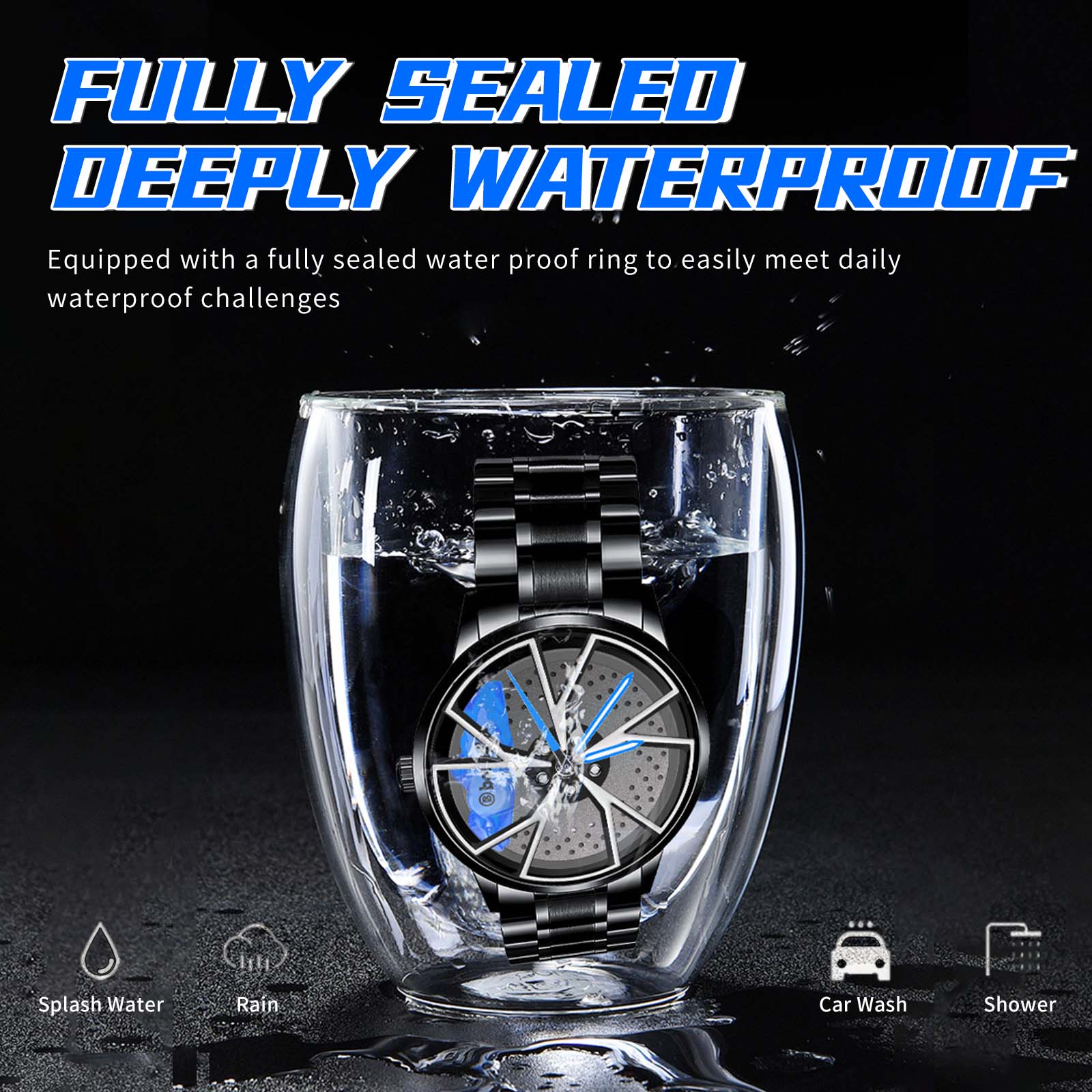Spinning Car Watch with Stainless Steel Band Waterproof Japanese Quartz Wrist Watch