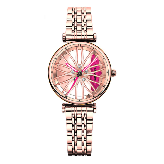 Spinning Car Watch for women with Stainless Steel Band Waterproof Japanese Quartz Wrist Watch